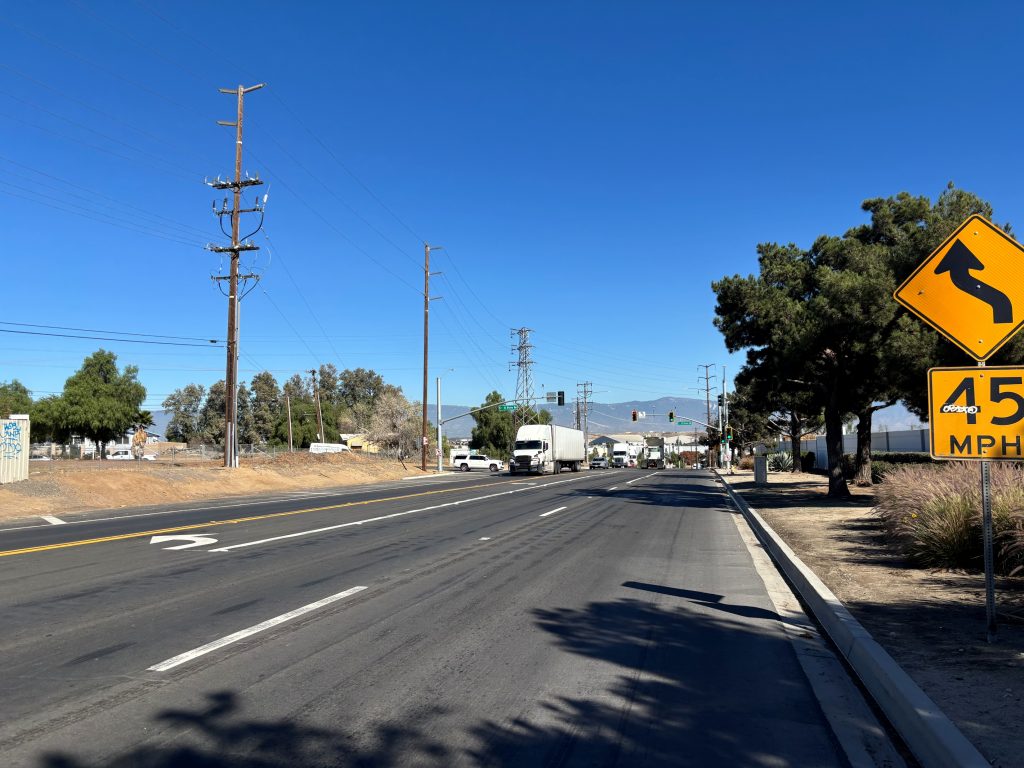 The San Bernardino County Public Works has completed the Agua Mansa Road and El Rivino Road Intersection Signal Project in the Bloomington Area. The project construction contract cost was $724,691 and was funded by Developer Fees and Senate Bill 1 Road Maintenance and Rehabilitation Account revenue. The work, in general, consists of installing traffic signals and lighting, roadway reconstruction, pavement rehabilitation, and painting traffic stripes and pavement markings. This project aligns with the County and Board of Supervisors’ goals and objectives of ensuring the development of a well-planned, balanced, and sustainable County and providing for the safety, health, and social needs of County residents.