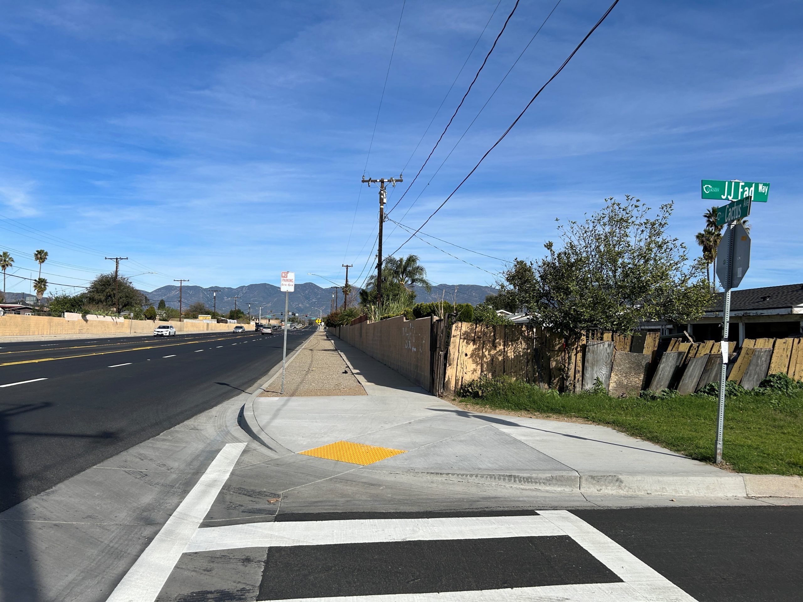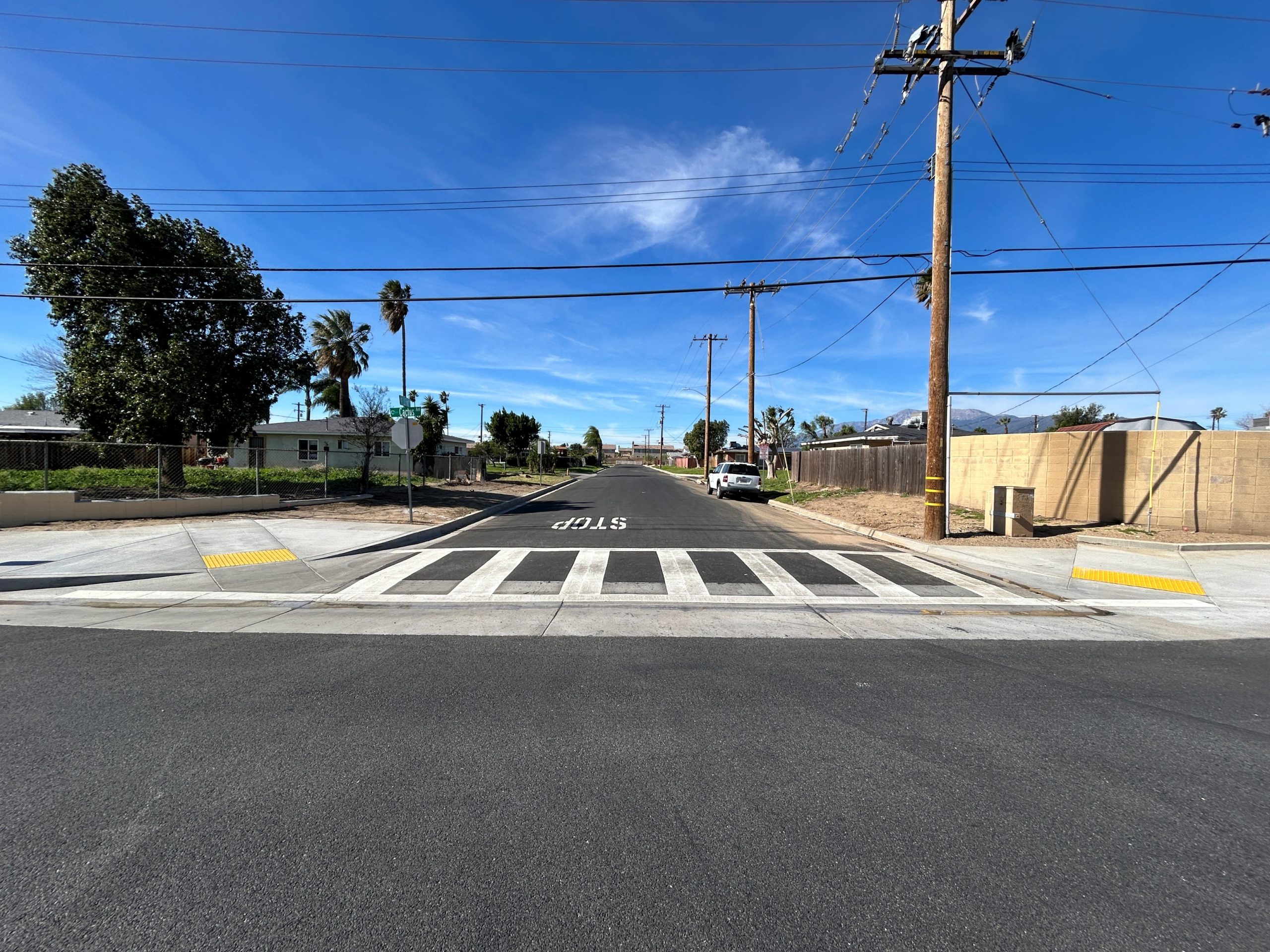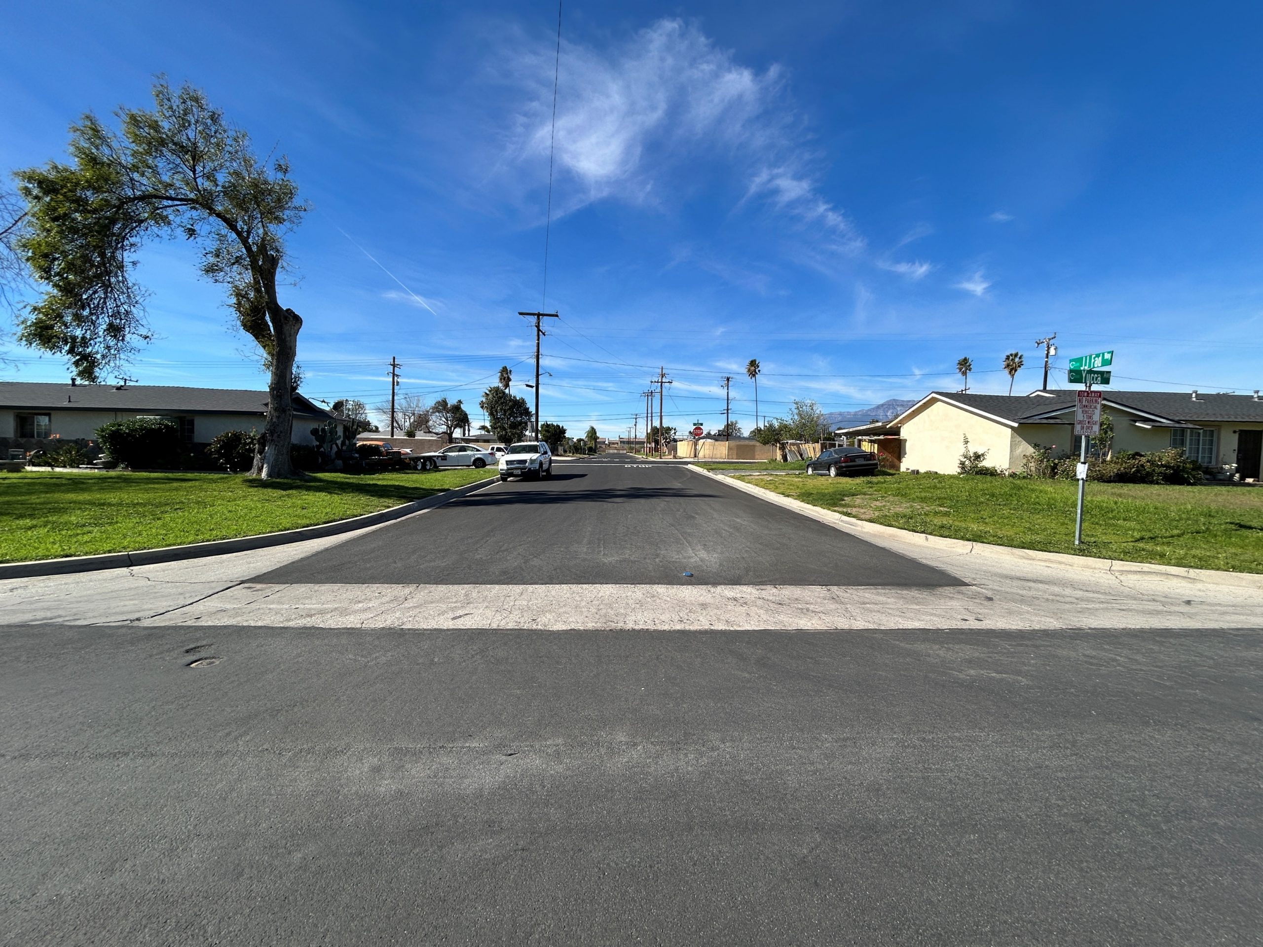 The San Bernardino County Public Works Department has completed the Blake Street and Other Roads – Phase II project in the Rialto Area. The project construction contract cost was $1,610,000 and was funded with the participation of Senate Bill 1, County Infrastructure General Fund Reserves and Available reserves from the County Service Area 70 . The project consisted of pavement rehabilitation and other various road treatments of approximately 2.92 miles of road in the Rialto area. Additional work included sidewalk repair, curb and gutter installation, existing curb ramps replacement and reconstruction in accordance with current design standards and pursuant to the Americans with Disabilities Act (ADA) guidelines, and installation of streetlight conduit. The project aligns with the County and the Chief Executive Officer’s goals and objectives of ensuring the development of a well-planned, balanced, and sustainable County by preserving and improving the structural integrity of existing road surfaces and providing Safety, Health and Social Service needs of the County Residents.