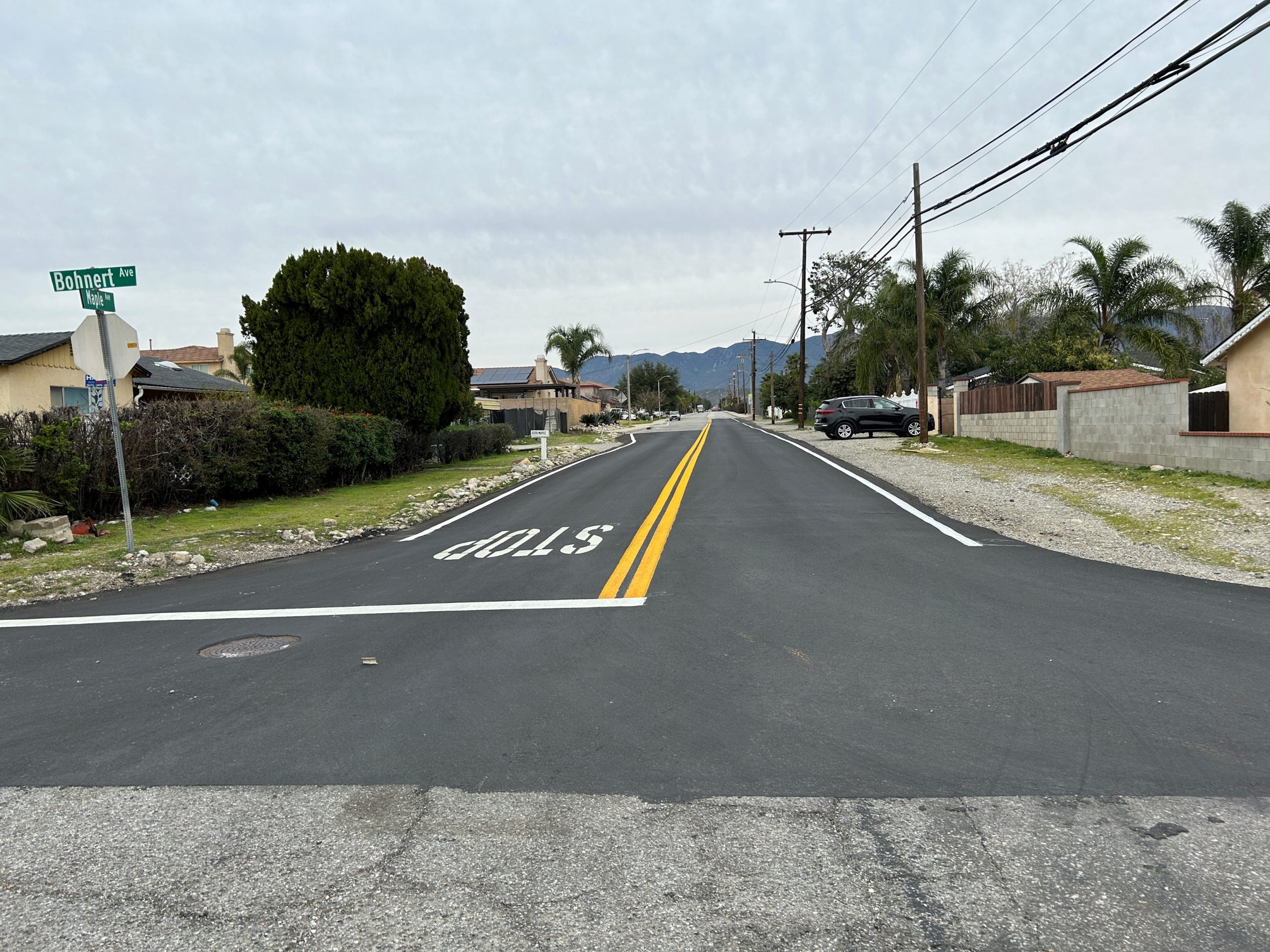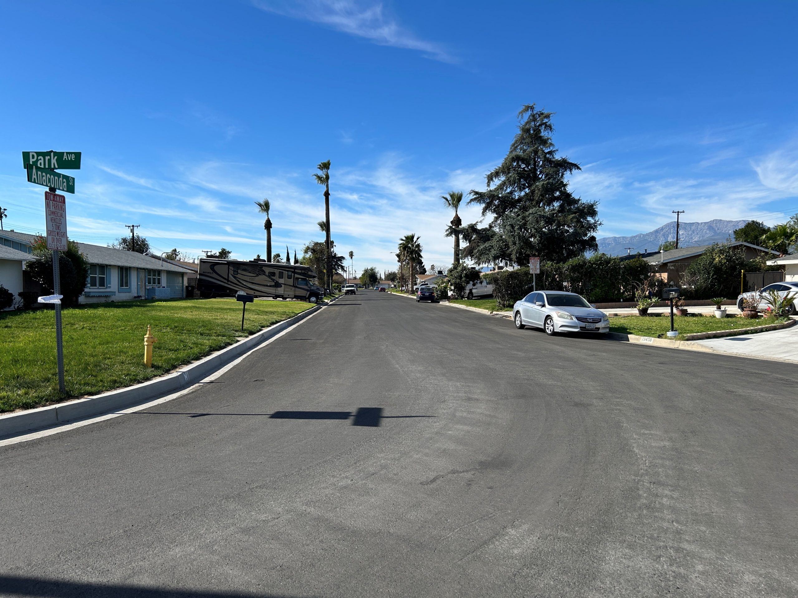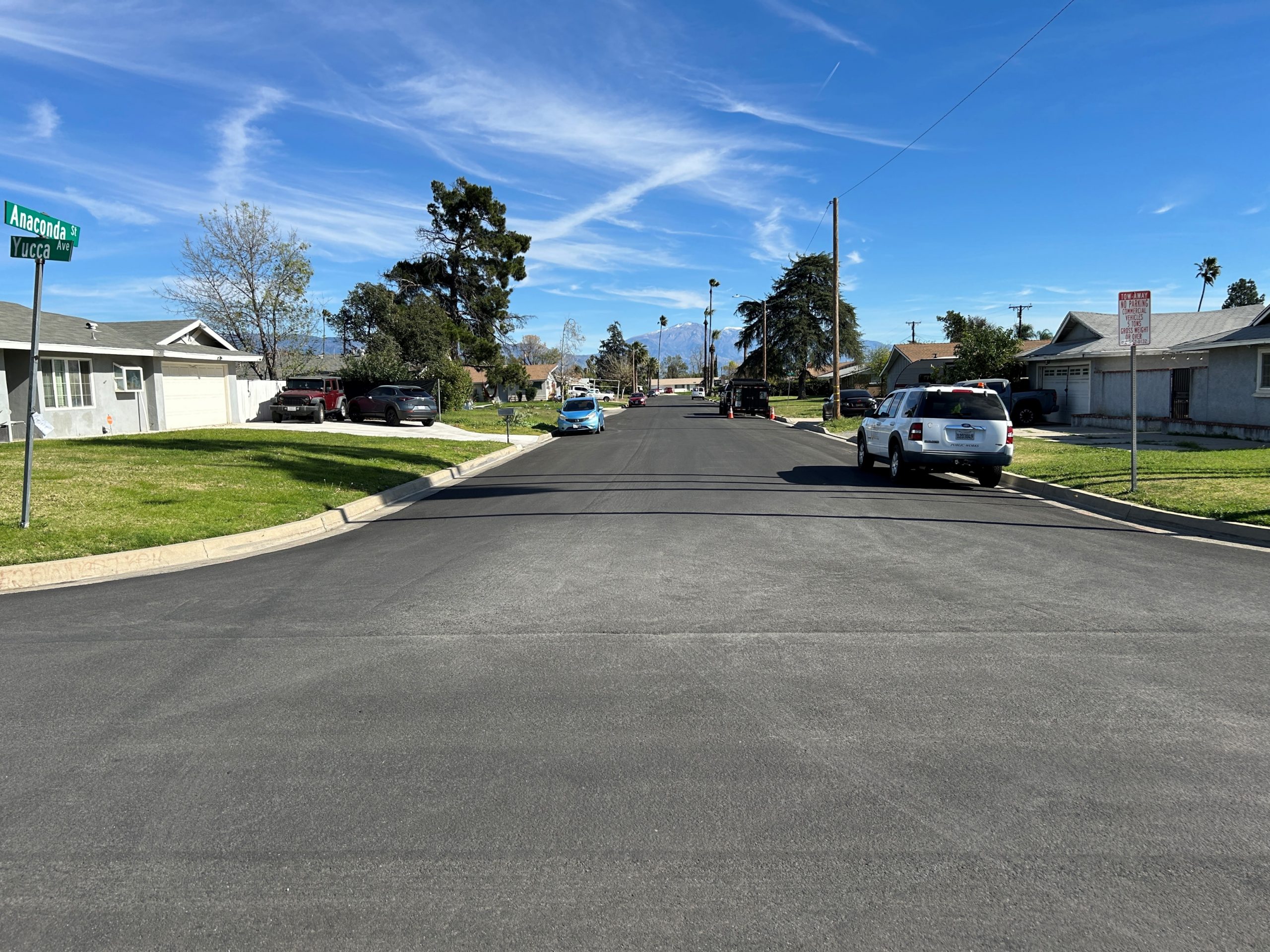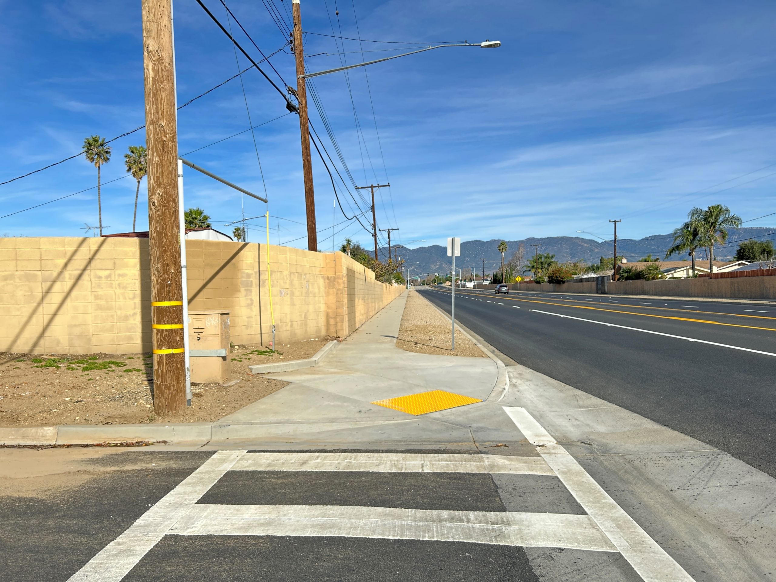 The San Bernardino County Public Works Department has completed the Blake Street and Other Roads – Phase II project in the Rialto Area. The project construction contract cost was $1,610,000 and was funded with the participation of Senate Bill 1, County Infrastructure General Fund Reserves and Available reserves from the County Service Area 70 . The project consisted of pavement rehabilitation and other various road treatments of approximately 2.92 miles of road in the Rialto area. Additional work included sidewalk repair, curb and gutter installation, existing curb ramps replacement and reconstruction in accordance with current design standards and pursuant to the Americans with Disabilities Act (ADA) guidelines, and installation of streetlight conduit. The project aligns with the County and the Chief Executive Officer’s goals and objectives of ensuring the development of a well-planned, balanced, and sustainable County by preserving and improving the structural integrity of existing road surfaces and providing Safety, Health and Social Service needs of the County Residents.