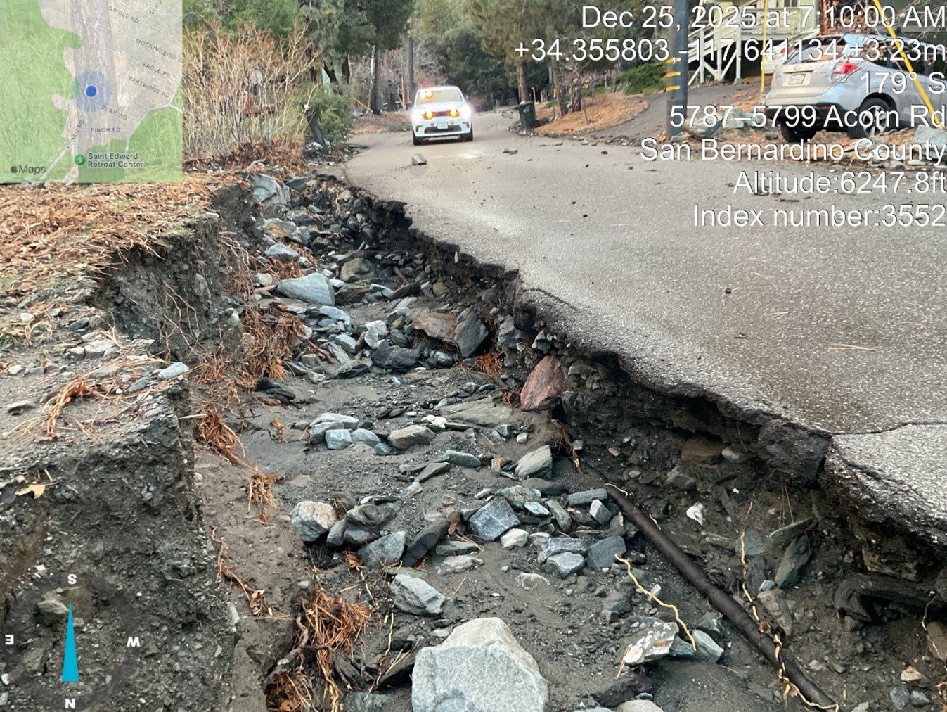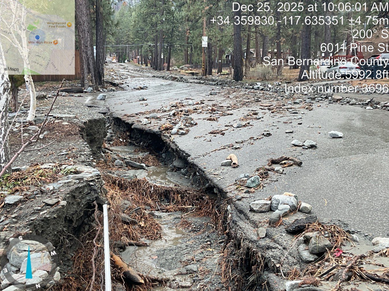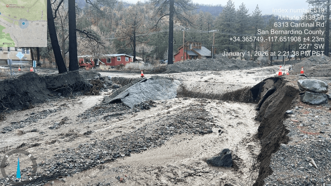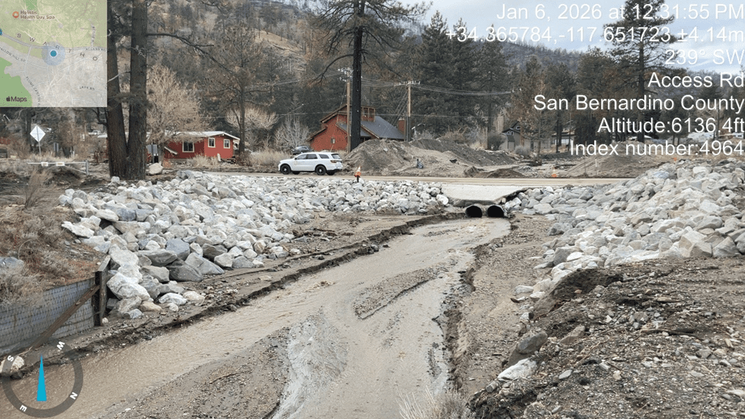 The Wrightwood area alone received 10.18 inches of rain within 12 hours, causing extreme flooding, mudflow, and road washouts. Despite the challenges and holiday timing, Public Works Operations crews worked around the clock to safeguard residents, restore critical access, and stabilize vulnerable infrastructure.