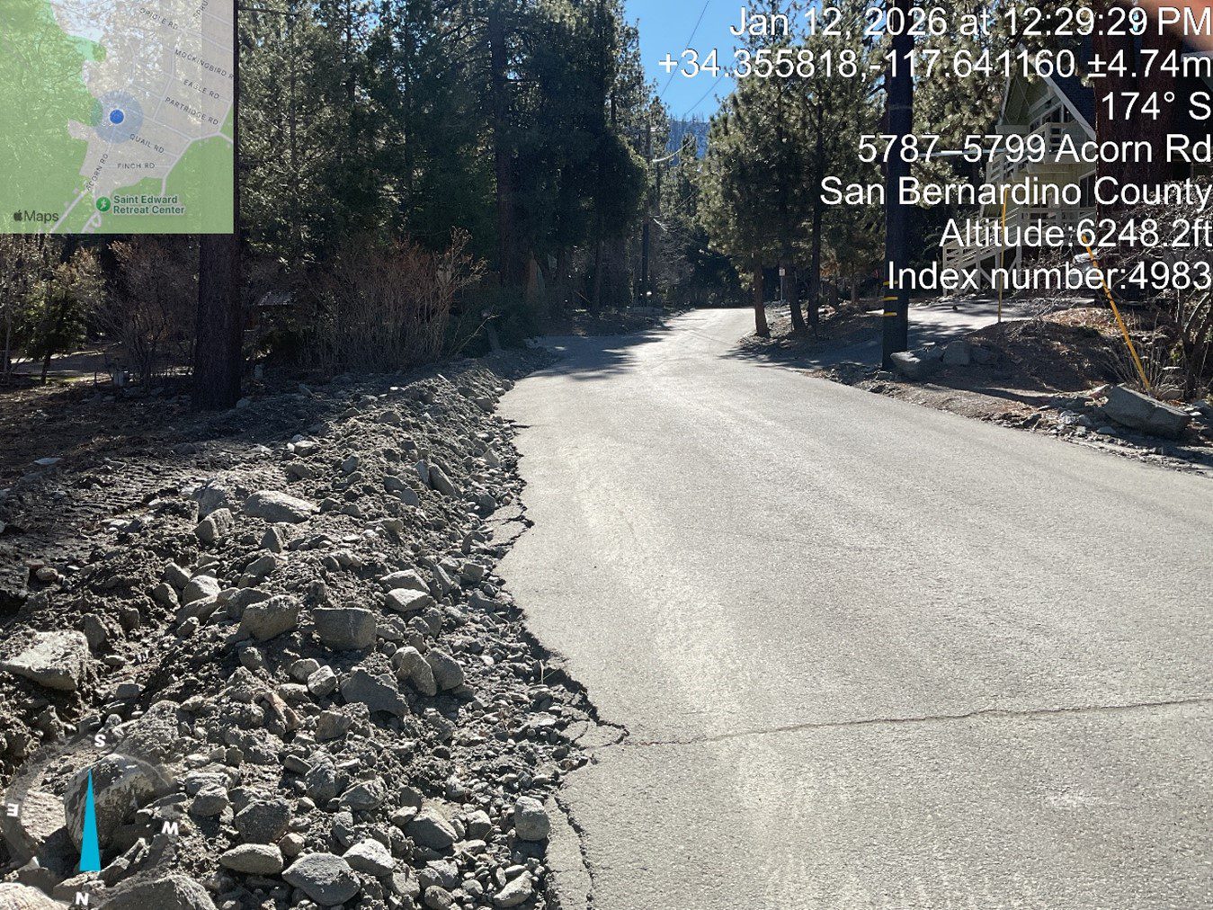- Removed debris to maintain natural flow paths, to open roads and regain access to severely impacted homes and mitigated damage in the Acorn Canyon area along Acorn Dr and Pine St despite lack of drainage infrastructure.
