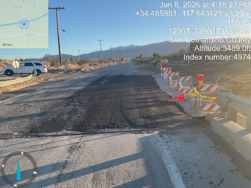 During the holiday storms, the High Desert Team worked tirelessly with a 24-hour emergency response effort to restore safety for thousands of residents. Crews reopened critical emergency routes and cleared closed roadways to ensure public safety. Temporary stabilization measures were implemented to protect key infrastructure and prevent further damage. Cleanup efforts are ongoing, and permanent reconstruction and preventive upgrades will continue throughout 2026.